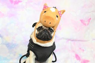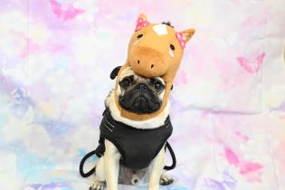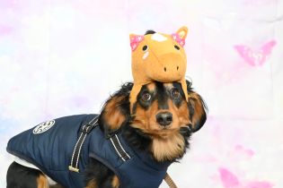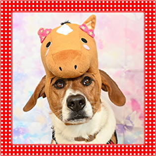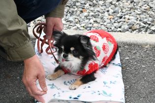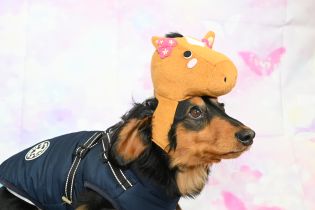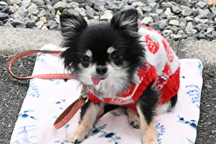 被り物をしても良く待てるよね♪偉いよ~