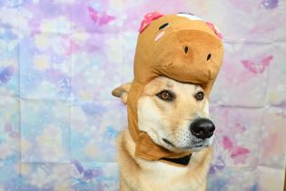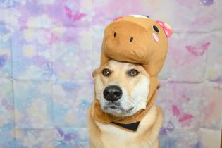 一人で被り物をして写真を撮るのも難しいのに